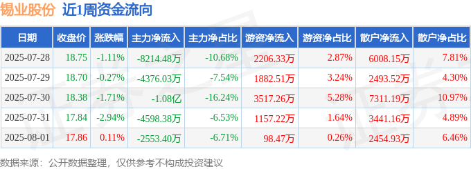 资金流向数据方面,本周锡业股份主力资金合计净流出3.06亿元,游资资金合计净流入8861.78万元,散户资金合计净流入2.17亿元。本周资金流向一览见下表: